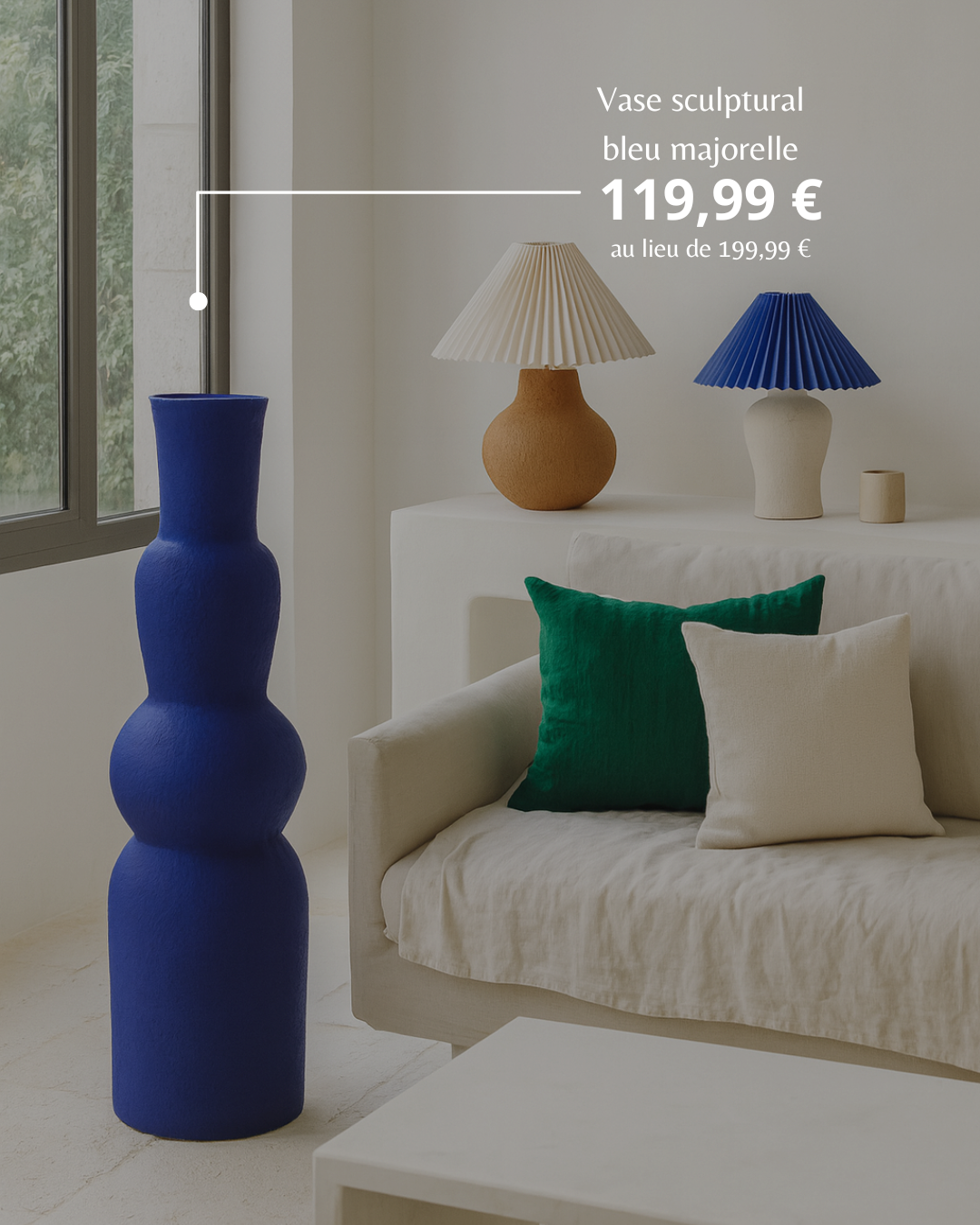 Vase sculptural bleu majorelle