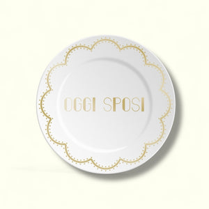 Célébrez l'amour et les nouveaux départs avec l’assiette "OGGI SPOSI". En porcelaine élégante, cette pièce est idéale pour marquer un mariage ou un moment précieux, parfaite pour offrir aux jeunes mariés ou sublimer votre table lors d’occasions spéciales. Un hommage raffiné aux moments inoubliables.