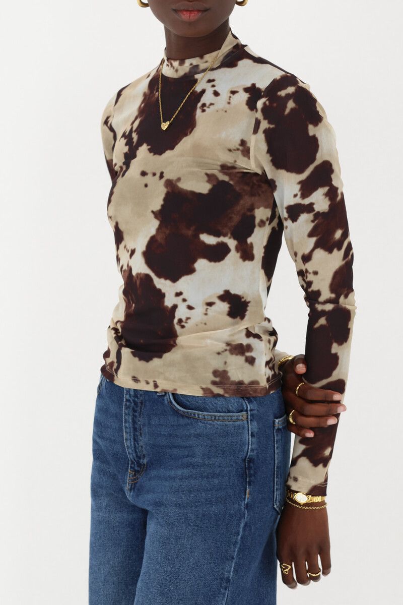 Haut en mesh marron avec imprimé vache