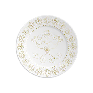 La collection a été créée pour exprimer de manière précieuse et originale un souvenir à l'occasion du mariage. Dentelle, macramé, lumières et décorations festives inspirent le décor doré appliqué aux soucoupes en porcelaine. Une façon de remercier vos proches et de célébrer ensemble un moment spécial.
