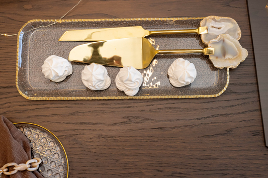 Vendor:aulicaGold-plated pie server and knife, beige agate stone