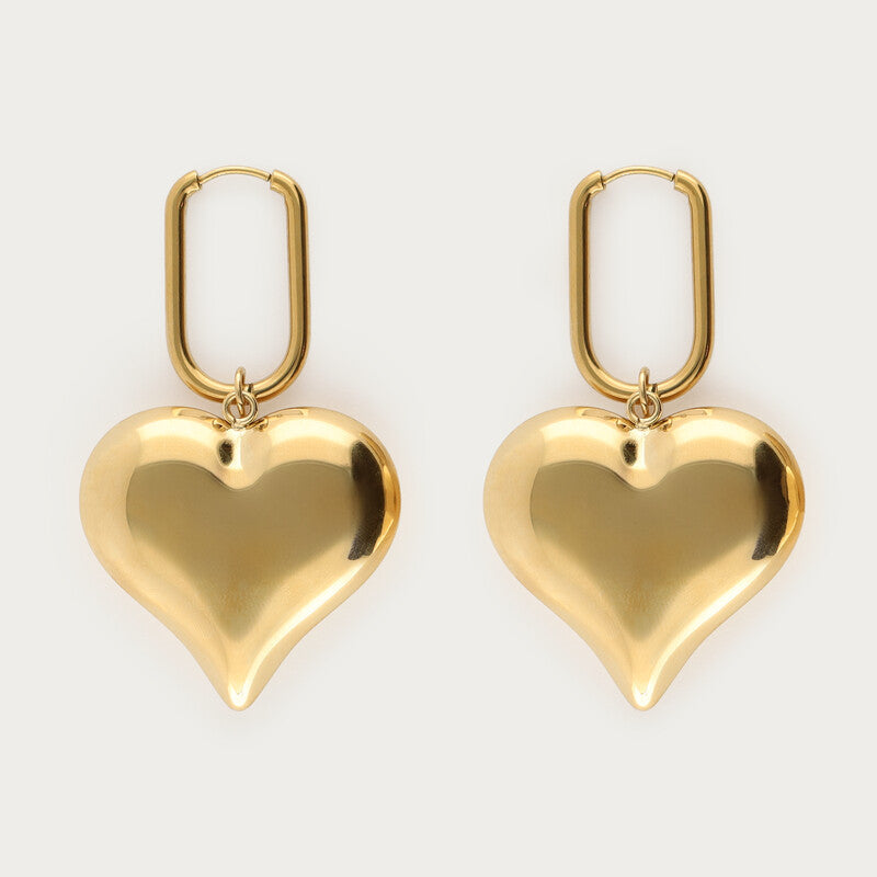 Boucles d'oreilles rectangulaires avec charm en forme de cœur