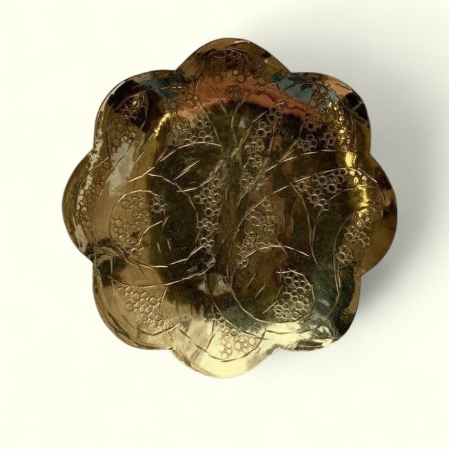 Cette Coupelle en Laiton est un accessoire décoratif élégant qui ajoute une touche de sophistication à n'importe quel intérieur. Son fini brillant et sa texture lisse la rendent unique et apportent un contraste saisissant avec d'autres matériaux. Parfait pour moudre du musc!