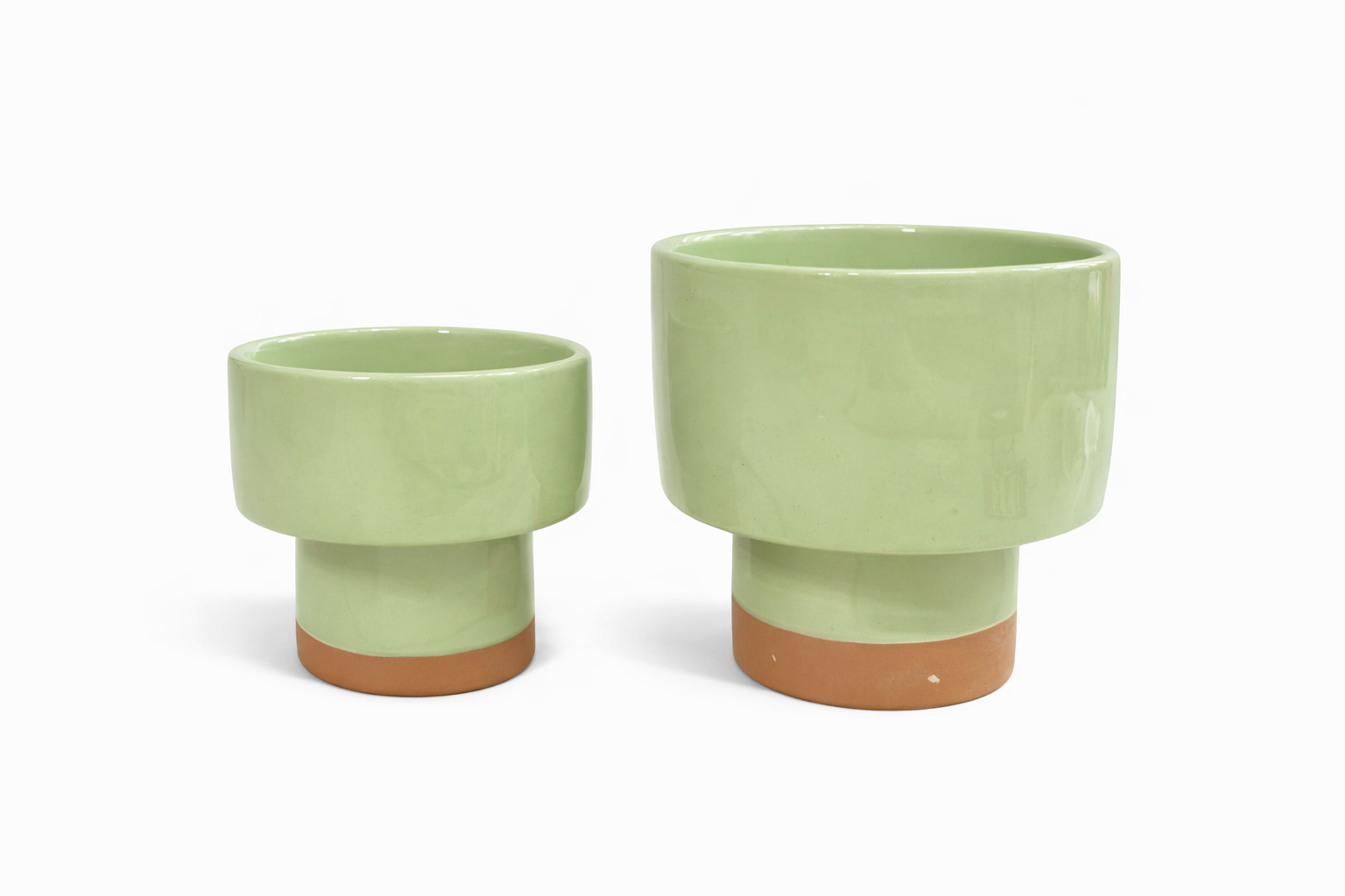 Le Piédestal Pistache apporte une touche joyeuse et solaire à l’intérieur avec sa silhouette basse, généreuse et parfaitement équilibrée. Son vert pistache lumineux contrasté par une base terracotta évoque une esthétique méditerranéenne contemporaine, douce et audacieuse à la fois. Déclinés en deux tailles, ces pots décoratifs trouvent naturellement leur place sur une console, une étagère ou une table, comme objets à vivre entre esprit design et sensibilité artisanale.