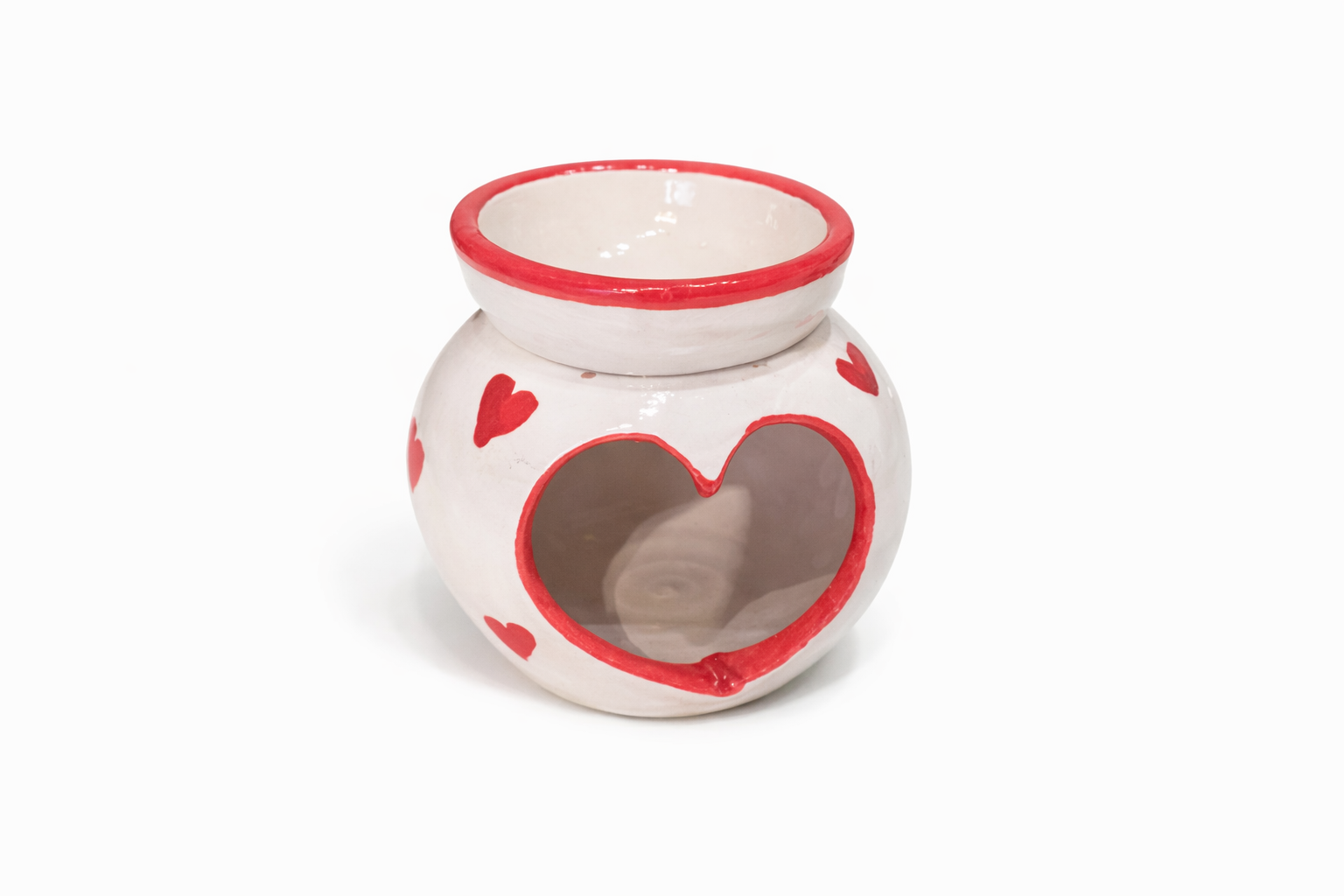 Avec ses délicats motifs de cœurs rouges peints à la main, le brûleur CUORE diffuse une atmosphère chaleureuse et pleine de douceur. Sa forme arrondie en céramique blanche, ouverte par un cœur central, laisse apparaître la lueur de la bougie tout en créant un jeu de lumière apaisant. Inspiré d’un art de vivre méditerranéen où chaque détail compte, cet objet décoratif transforme un simple moment parfumé en véritable instant de convivialité.
