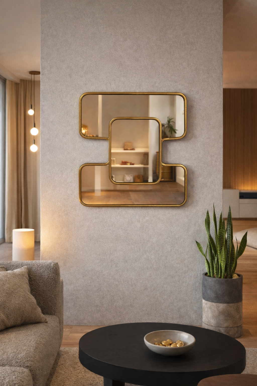 Een organische messing spiegel, vervaardigd door Marokkaanse ambachtslieden in samenwerking met meesters in spiegel- en messingbewerking. Ideaal om een vleugje warmte en gezelligheid aan uw interieur toe te voegen!