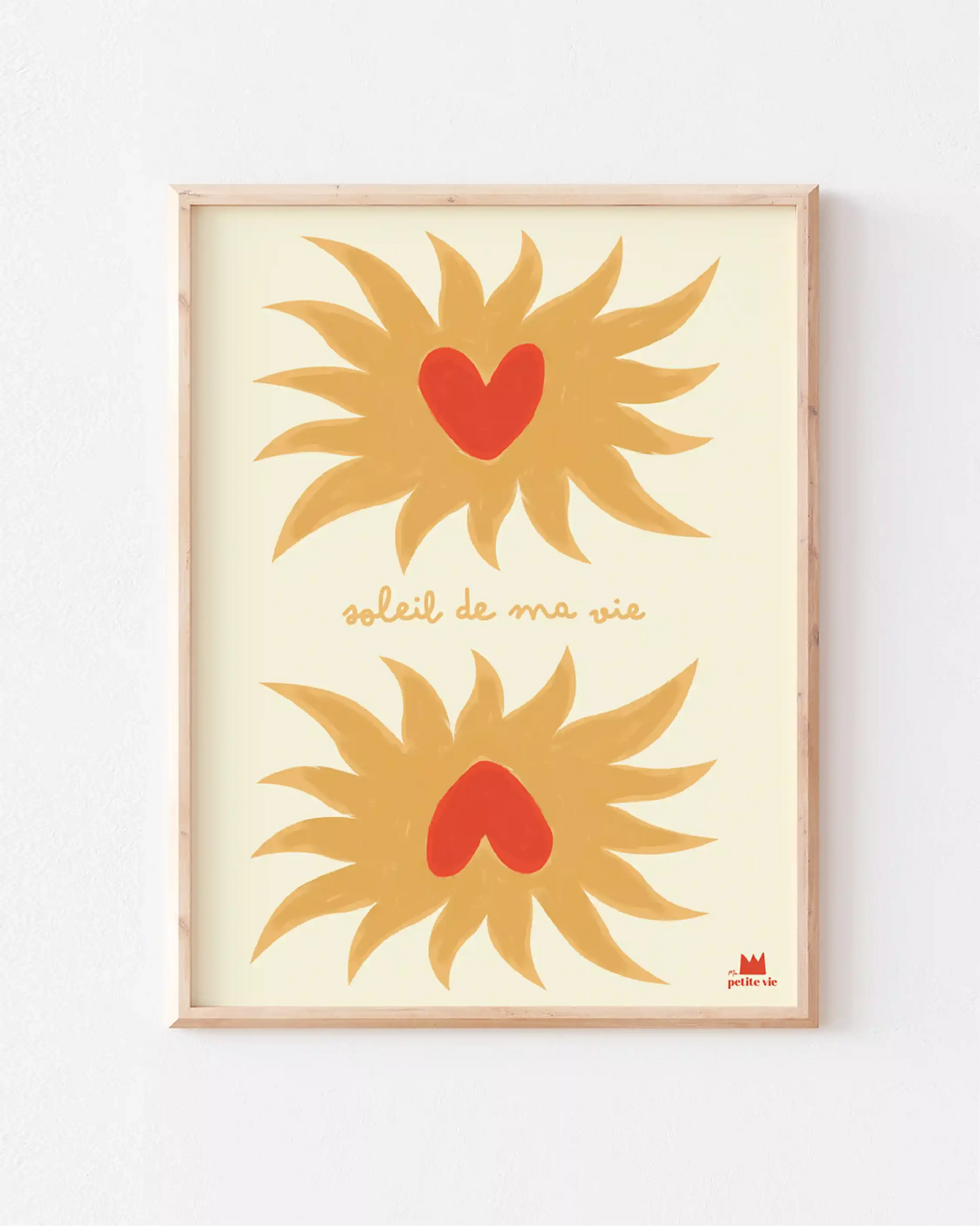 Deux soleils dorés, un cœur rouge au centre et trois mots qui réchauffent tout. Une affiche qui évoque la tendresse, les êtres chers et les intérieurs baignés de lumière où l'amour s'affiche sans retenue. Idéale pour apporter une touche chaleureuse et lumineuse à votre salon, votre chambre ou en faire un cadeau qui dit tout.