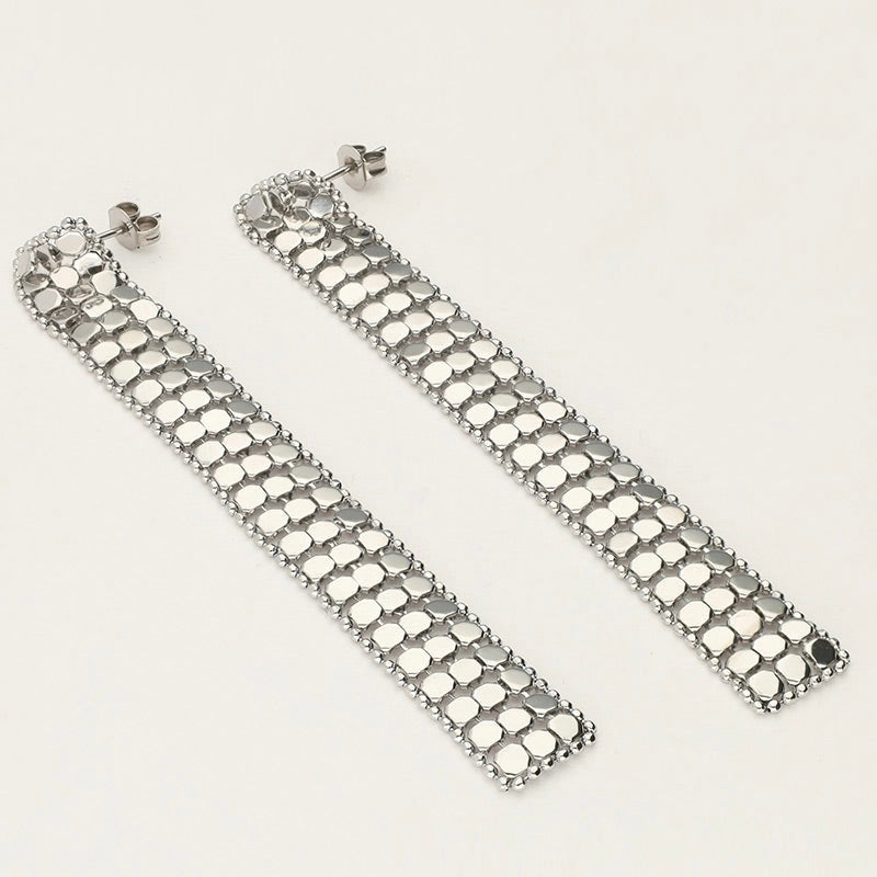 • Les boucles d'oreilles mesurent 8 cm de long et 1 cm de large.