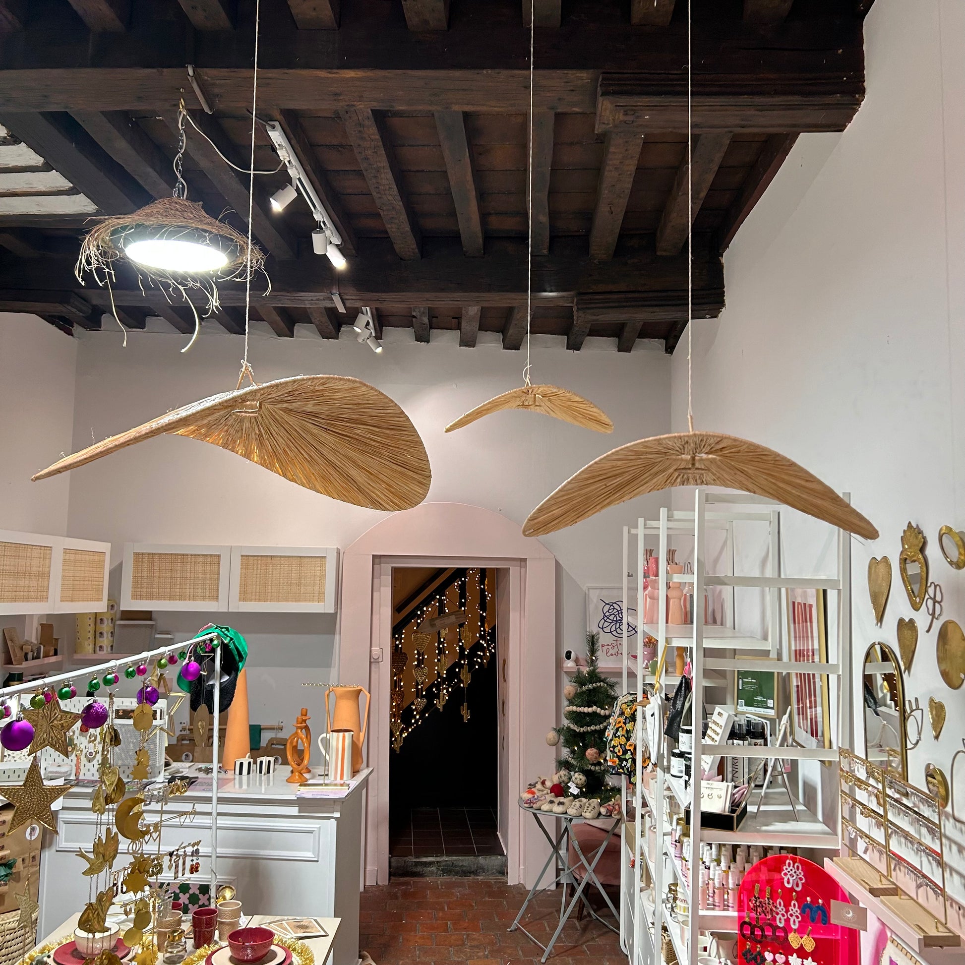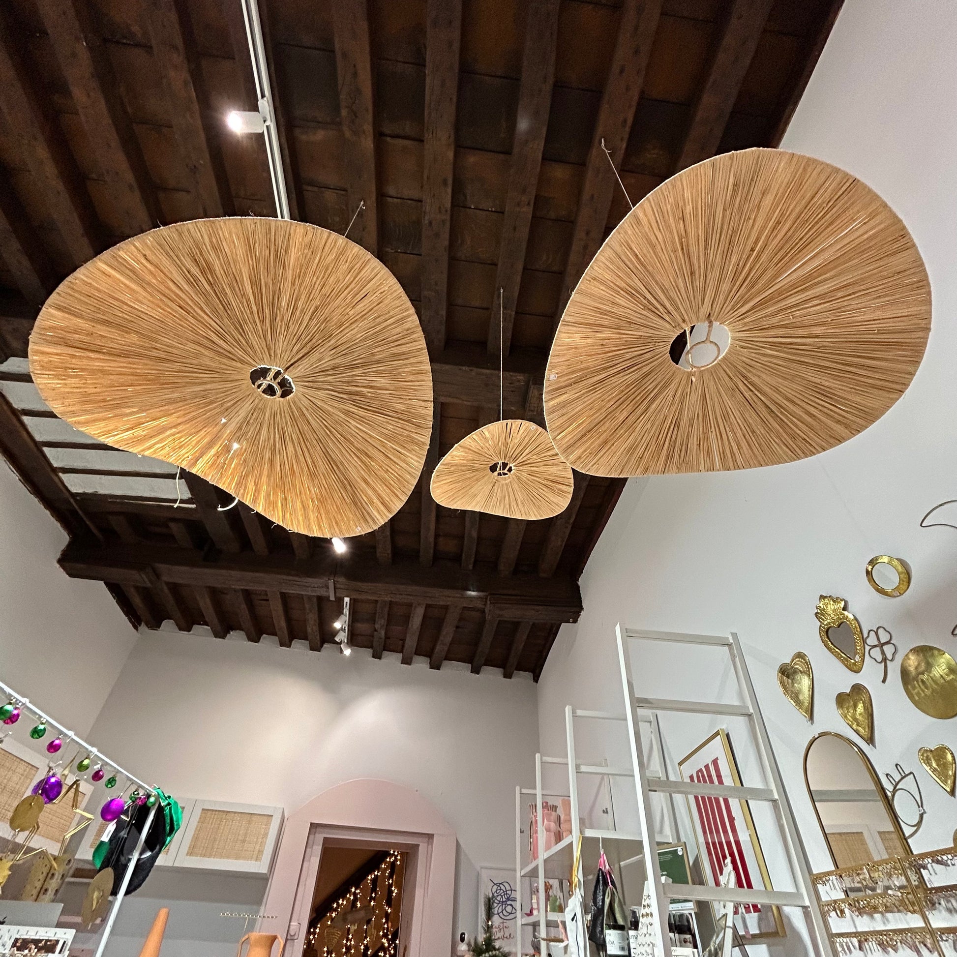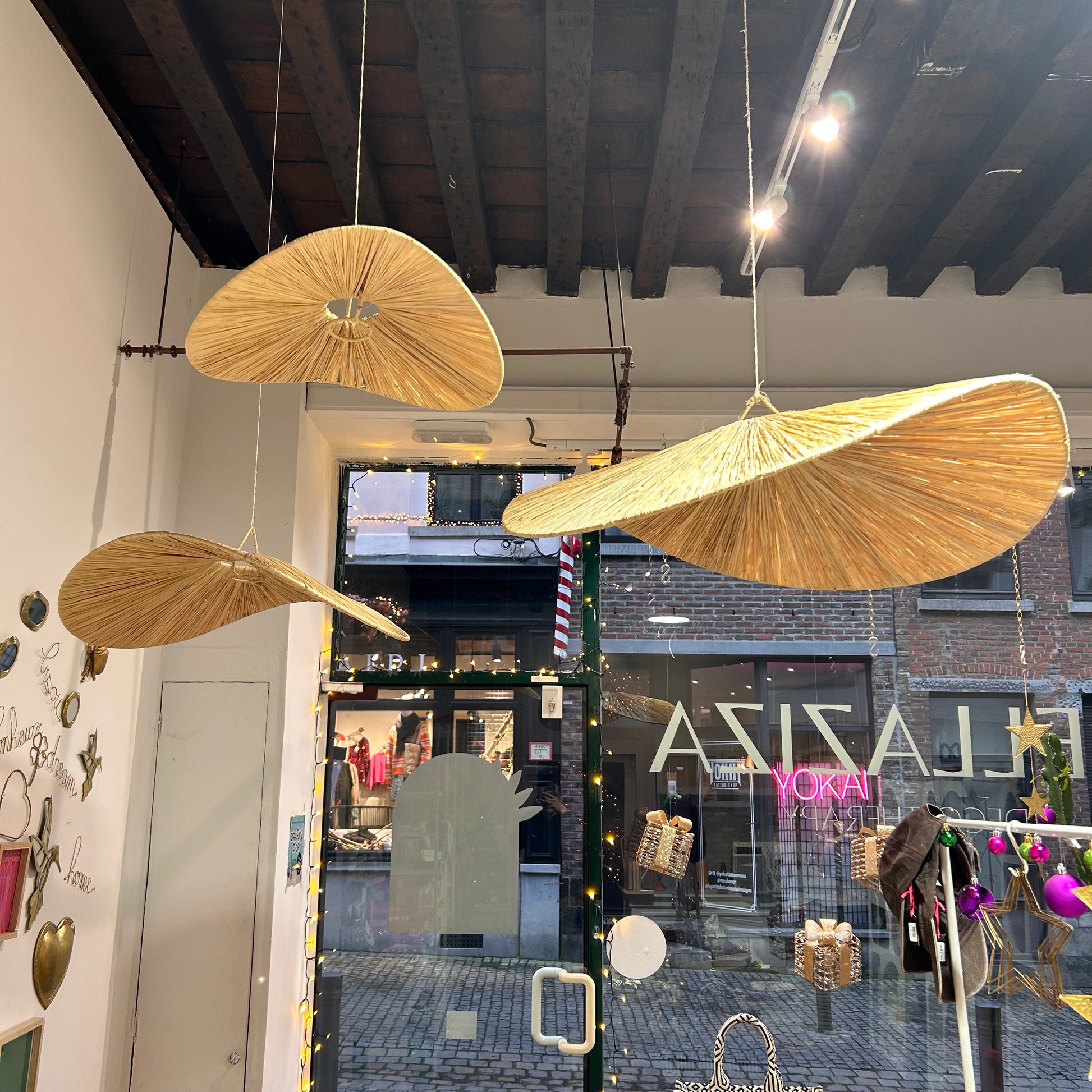 Découvrez l'élégance artisanale de nos 3 lustres en raphia en forme de chips, confectionnés avec passion dans la région de Marrakesh au Maroc. Chaque pièce, issue du savoir-faire local, évoque l'authenticité et le charme de cette ville magique. Ajoutez une touche de Marrakesh à votre intérieur avec ces créations uniques, disponibles exclusivement dans notre boutique Bellaziza à Mons. Transformez votre espace en un havre de chaleur et d'élégance, inspiré par la tradition et l'artisanat marocain.