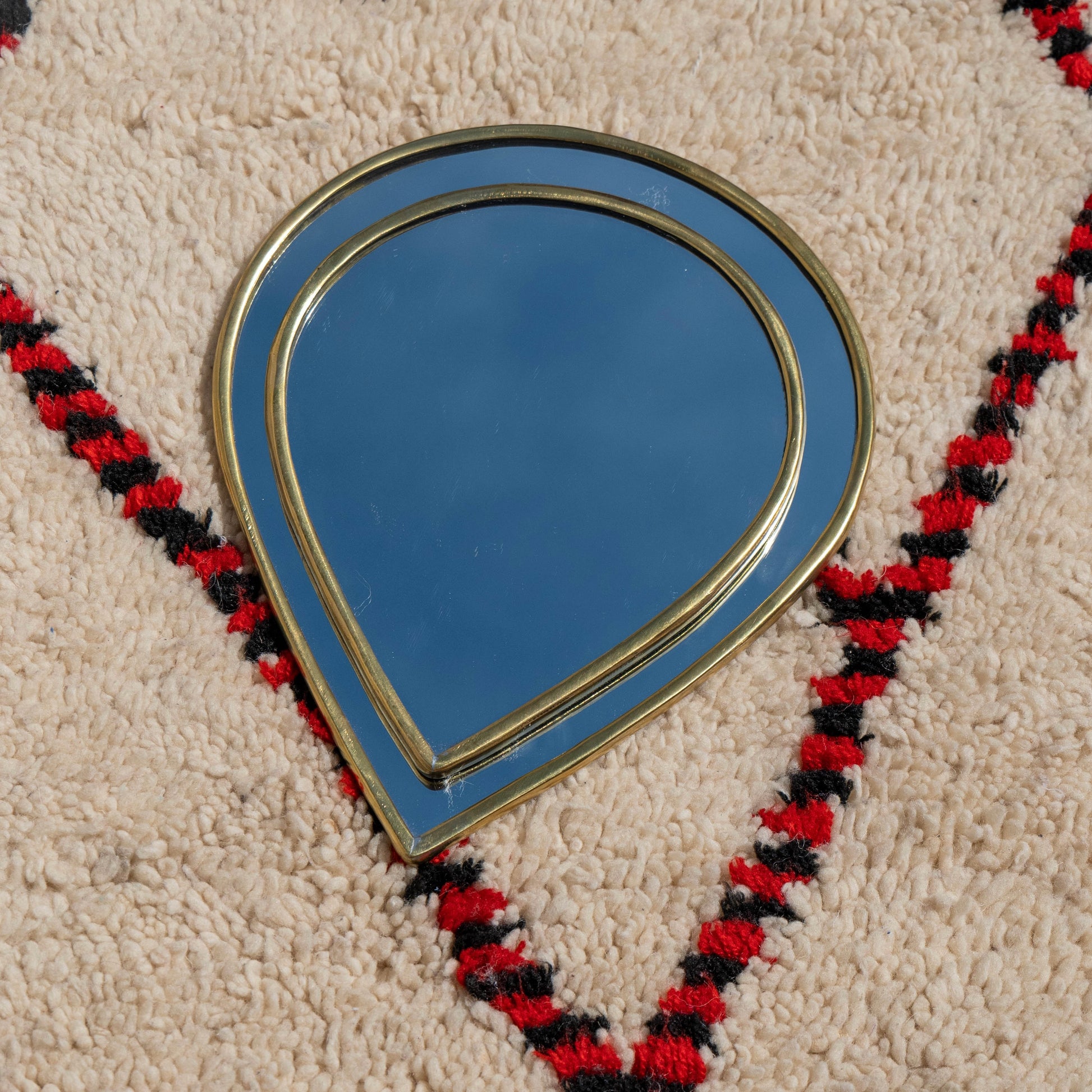 Un miroir en laiton à la forme de goutte, créé par des artisans marocains en collaboration avec les maîtres du miroir et du laiton. Idéal pour apporter une touche de chaleur et de confort à votre intérieur !