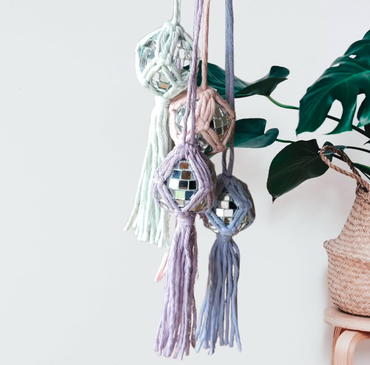 Ajoutez une touche bohème et festive à votre intérieur avec cette suspension disco en macramé. Ses reflets scintillants et ses tons pastel doux s’associent parfaitement pour créer une ambiance chic et originale. Une création artisanale idéale pour égayer vos espaces avec élégance.