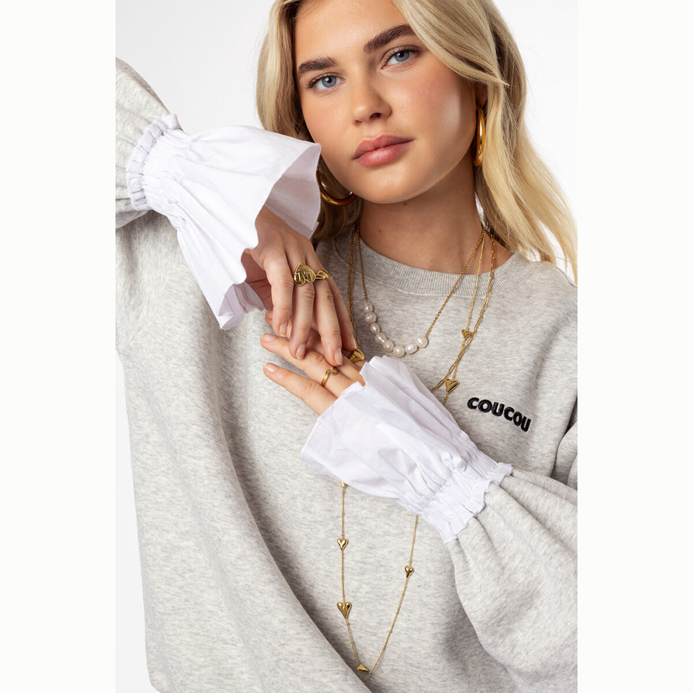 Sweat gris clair avec manchettes en popeline "Coucou"