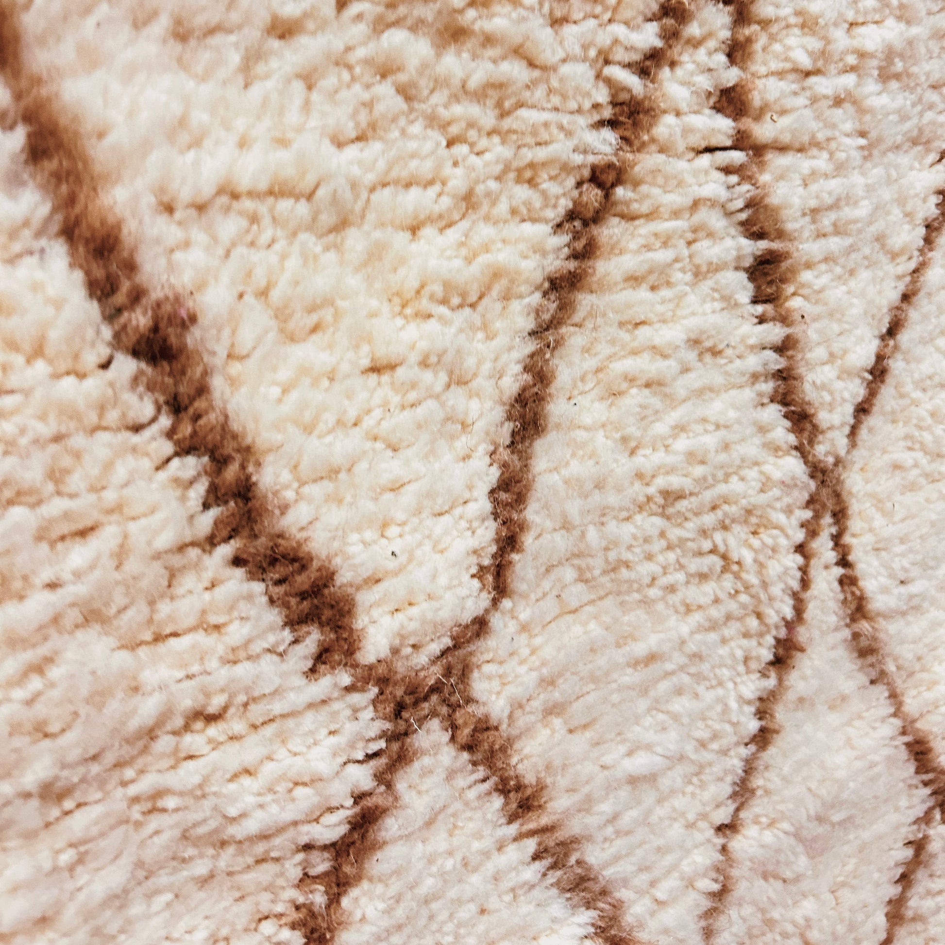 Découvrez l'exclusivité de notre tapis berbère, une pièce authentique aux accents marocains, tissée avec passion par une coopérative de femmes. Son fond crème et ses lignes camel apportent une touche de chaleur à votre intérieur, parfaite pour sublimer votre décoration. Optez pour l'élégance berbère et transformez votre espace.
