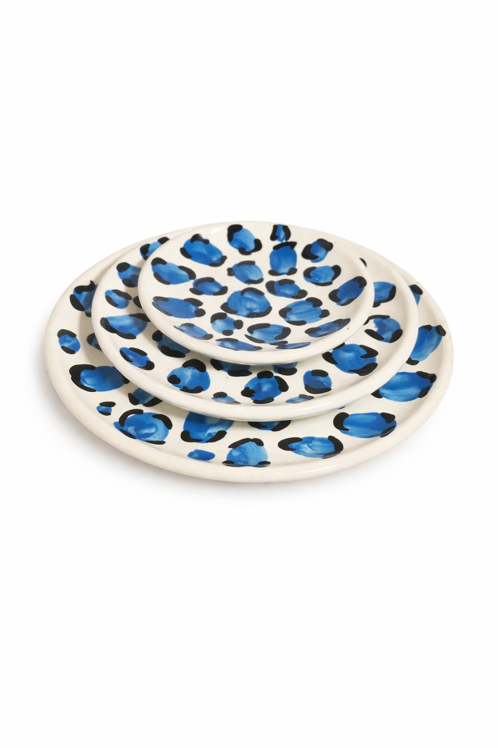 Découvrez notre trio d'assiettes LEO, une célébration de l'artisanat marocain authentique. Chaque pièce est façonnée à la main par nos artisans avec soin, arborant un motif léopard intemporel sur fond bleu profond. Trois dimensions harmonieuses pour composer votre table avec élégance et personnalité. Un ensemble qui allie tradition méditerranéenne et design contemporain, parfait pour sublimer vos moments de convivialité.